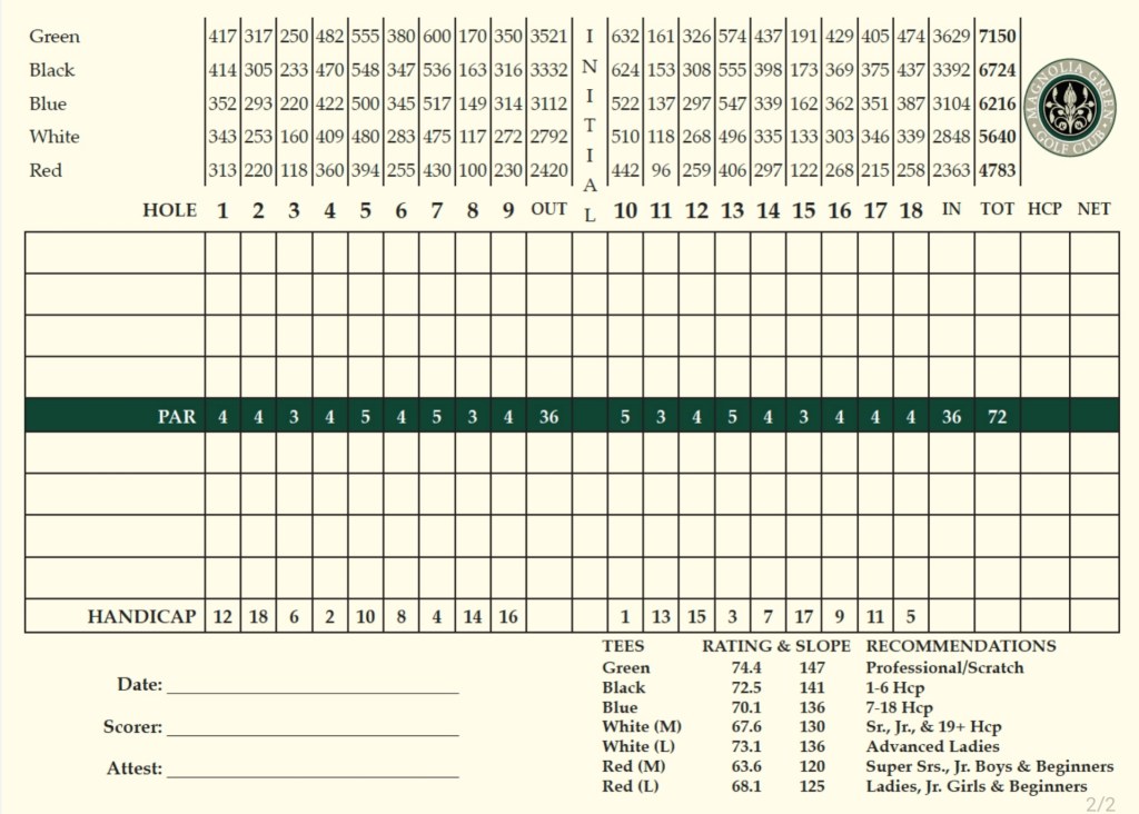 PGE plays Magnolia Green from the men’s blue tees.